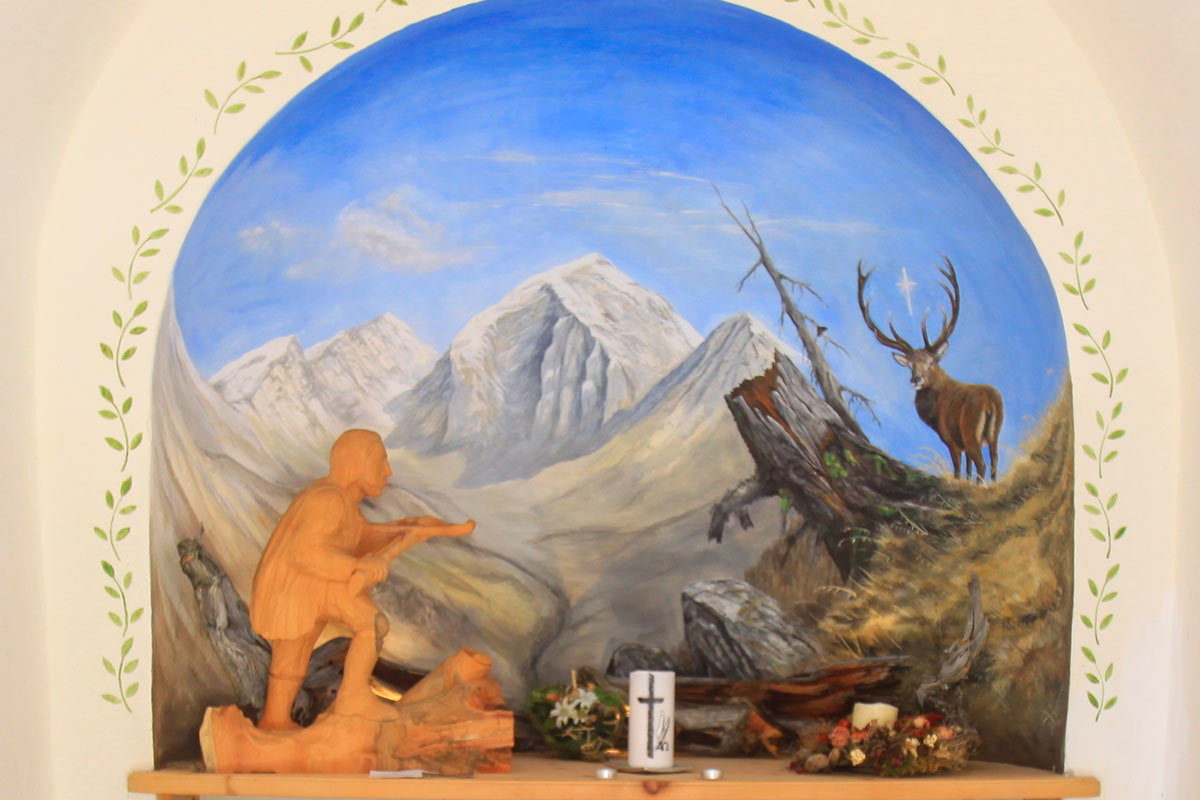Leider konnten wir nicht herausfinden, nach welchem Schutzpatron die damalige Kapelle benannt war. Somit beschlossen wir uns gemeinsam, die neu errichtete, dem Hl. Hubertus zu widmen.